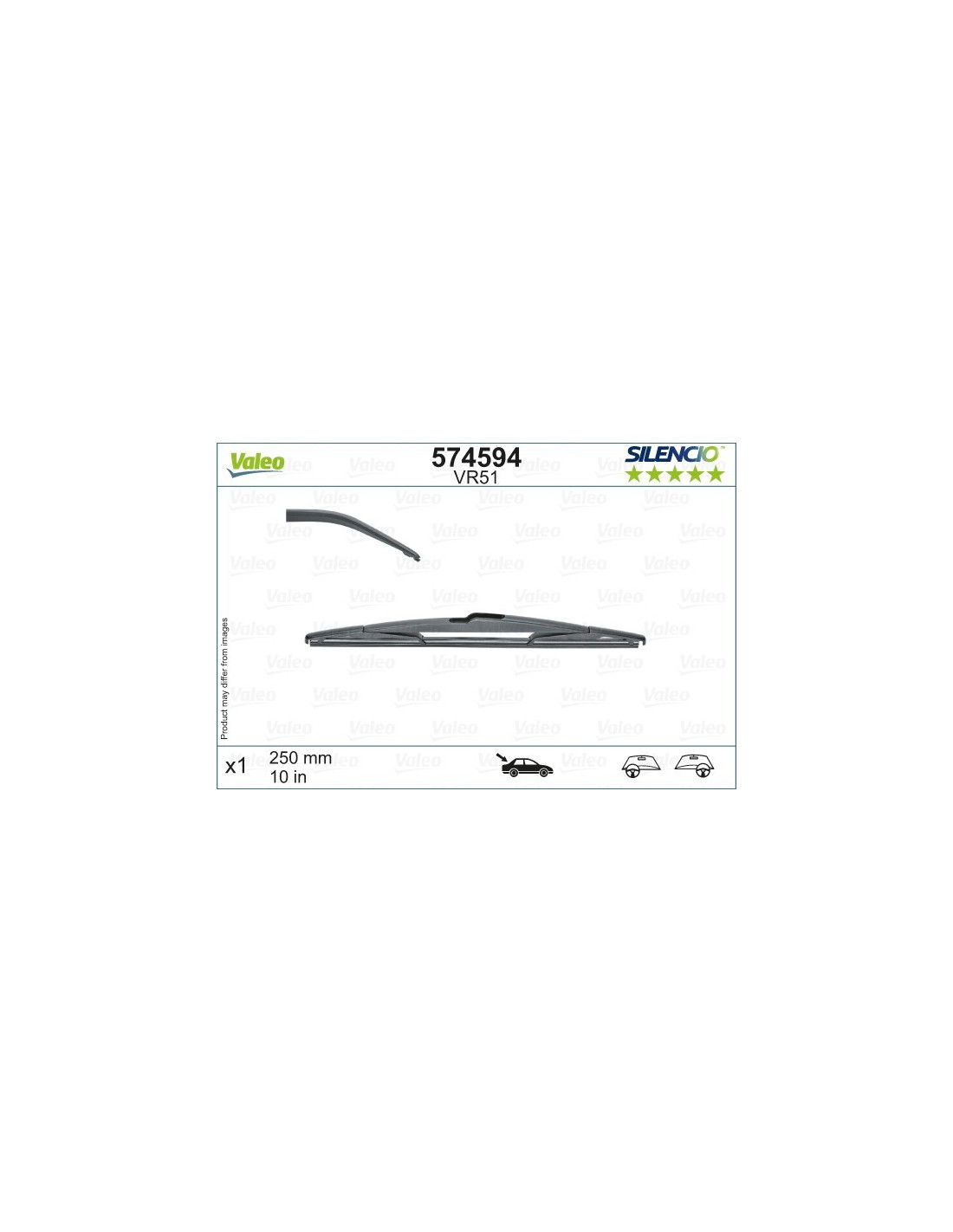 Wiper blade Valeo Silencio Rear VR51. Code: VR51, Length: 250.