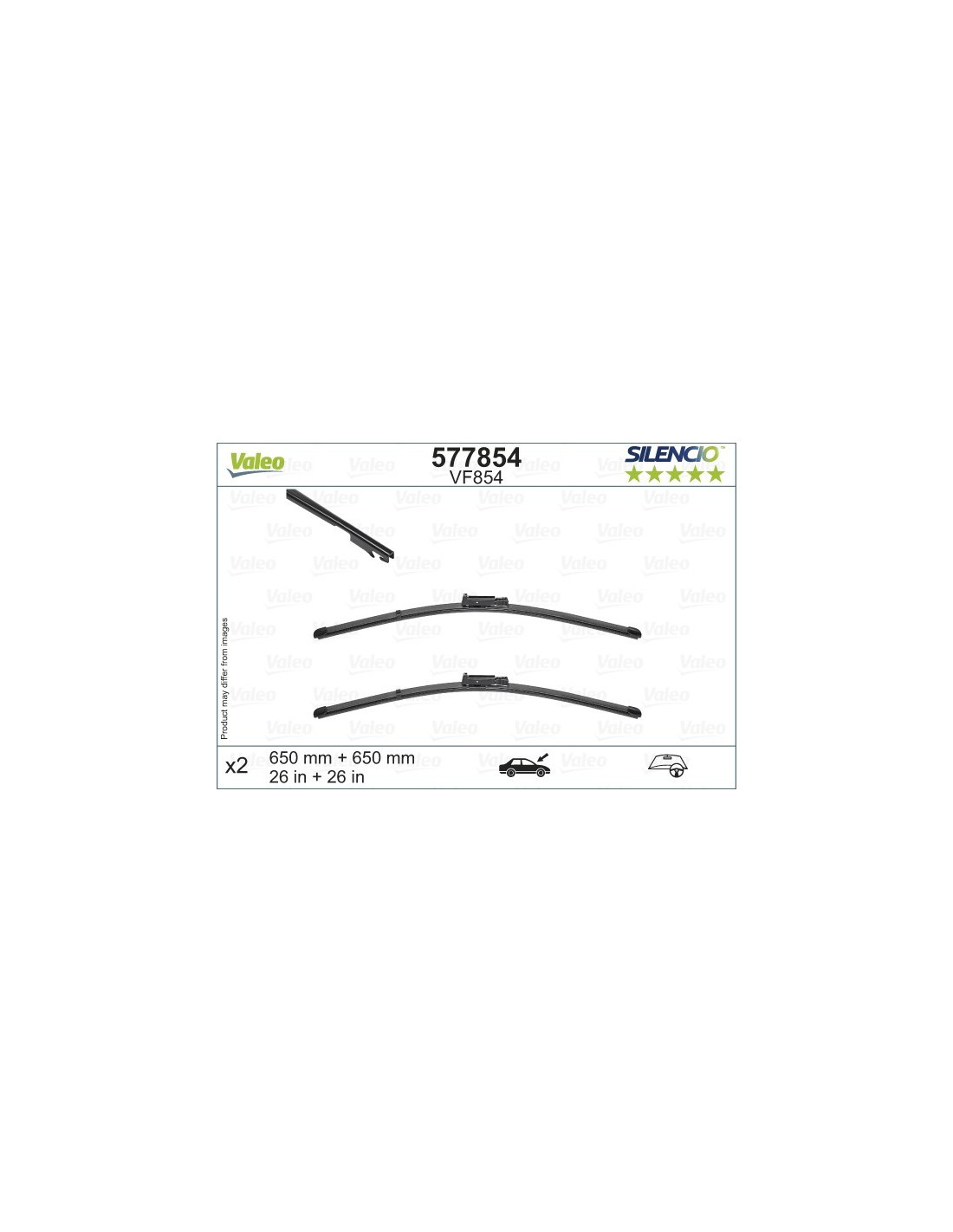 Wiper blades kit Valeo Silencio VF854. Code: VF854, Length: 650/650.