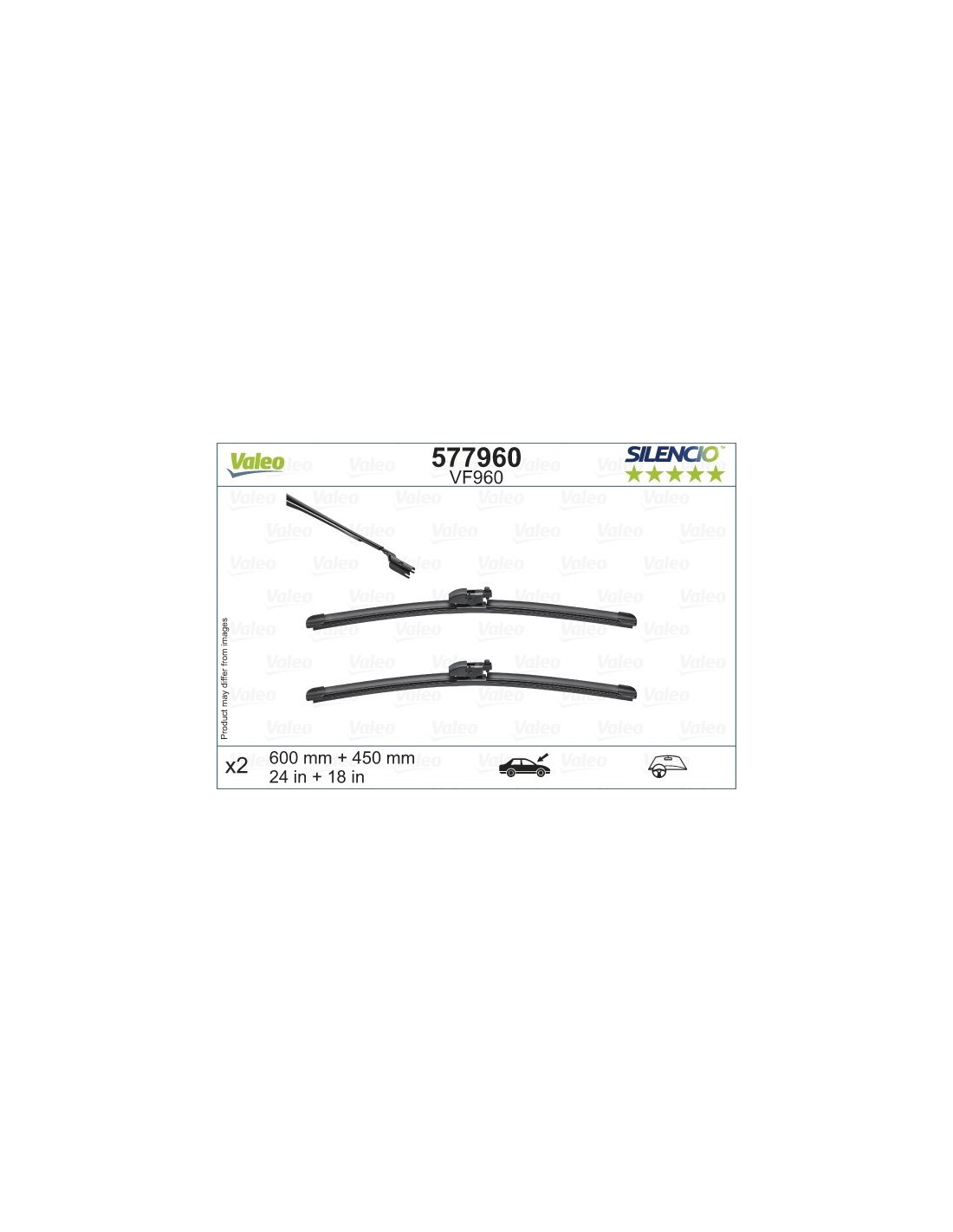Wiper blades kit Valeo Silencio VF960. Code: VF960, Length: 600/450.